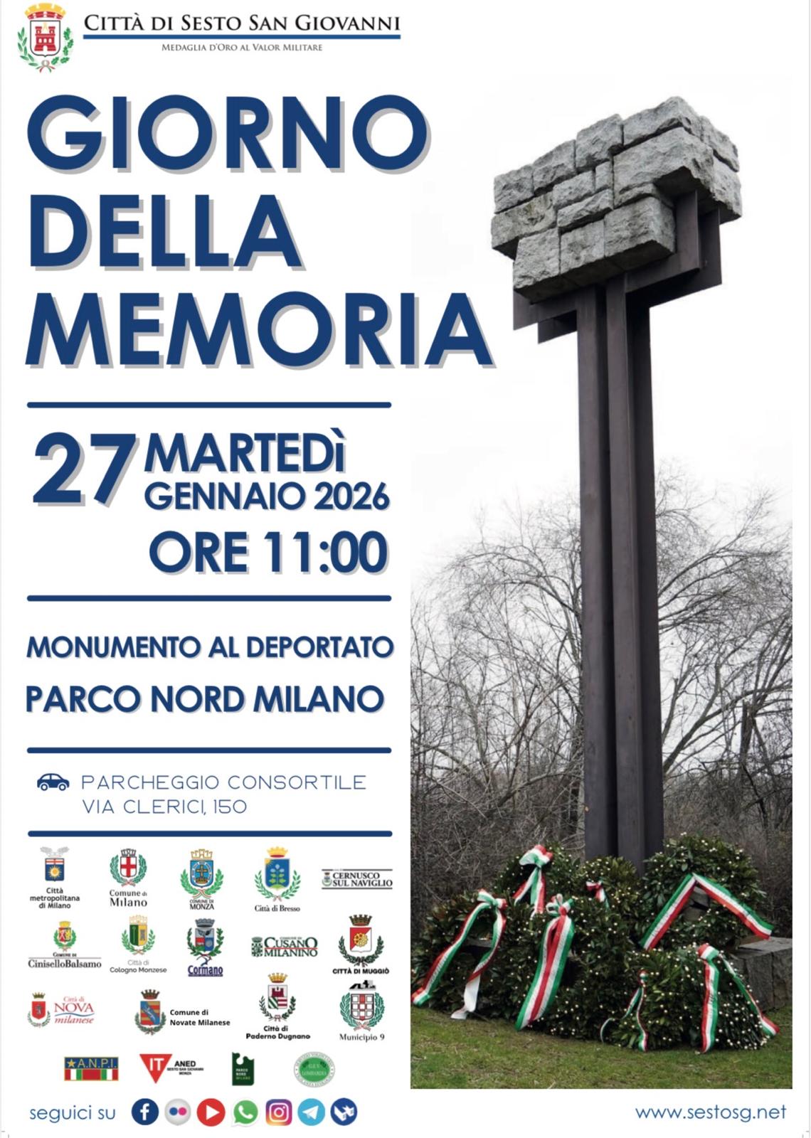 Il secondo momento dedicato al Giorno della Memoria si svolge martedì 27 gennaio, con la tradizionale partecipazione alla commemorazione istituzionale presso il Monumento al Deportato al Parco Nord. Il ritrovo, insieme ai Comuni del Nord Milano, è previsto alle ore 11.00, come da indicazioni in locandina allegata alla news.