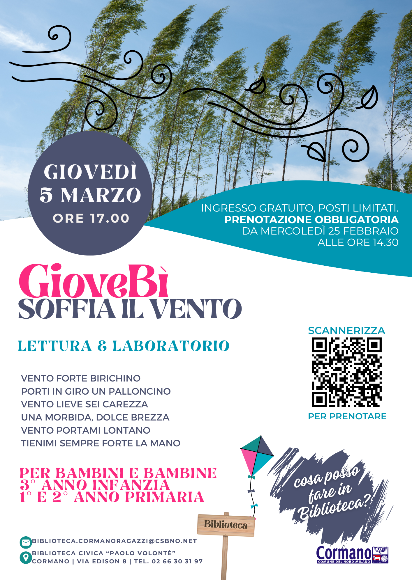 Da mercoledì 25 febbraio alle ore 14.30 si aprono le iscrizioni per il GioveBì del 5 marzo alle 17.