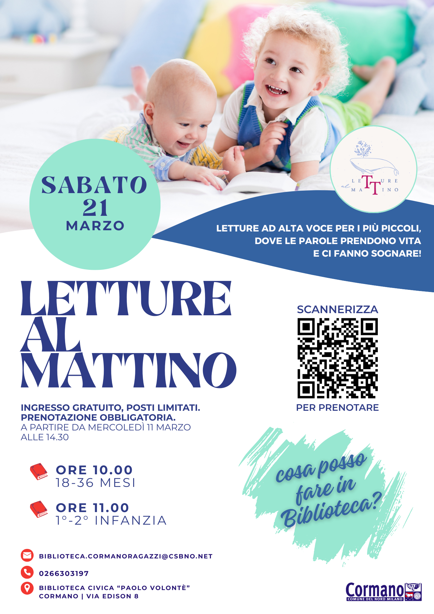Sabato 21 marzo torna l'appuntamento ormai consueto con le letture per i piccolissimi.